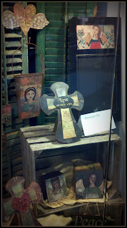 Blossom Bucket had a beautiful “Wings of Encouragement” Angel display on the 8th floor of the Atlanta Mart. I was sooo shocked to see this! I had no idea Cindy was doing this window display…..what a beautiful job they did making these products using my angel artwork. The translation is beautiful!