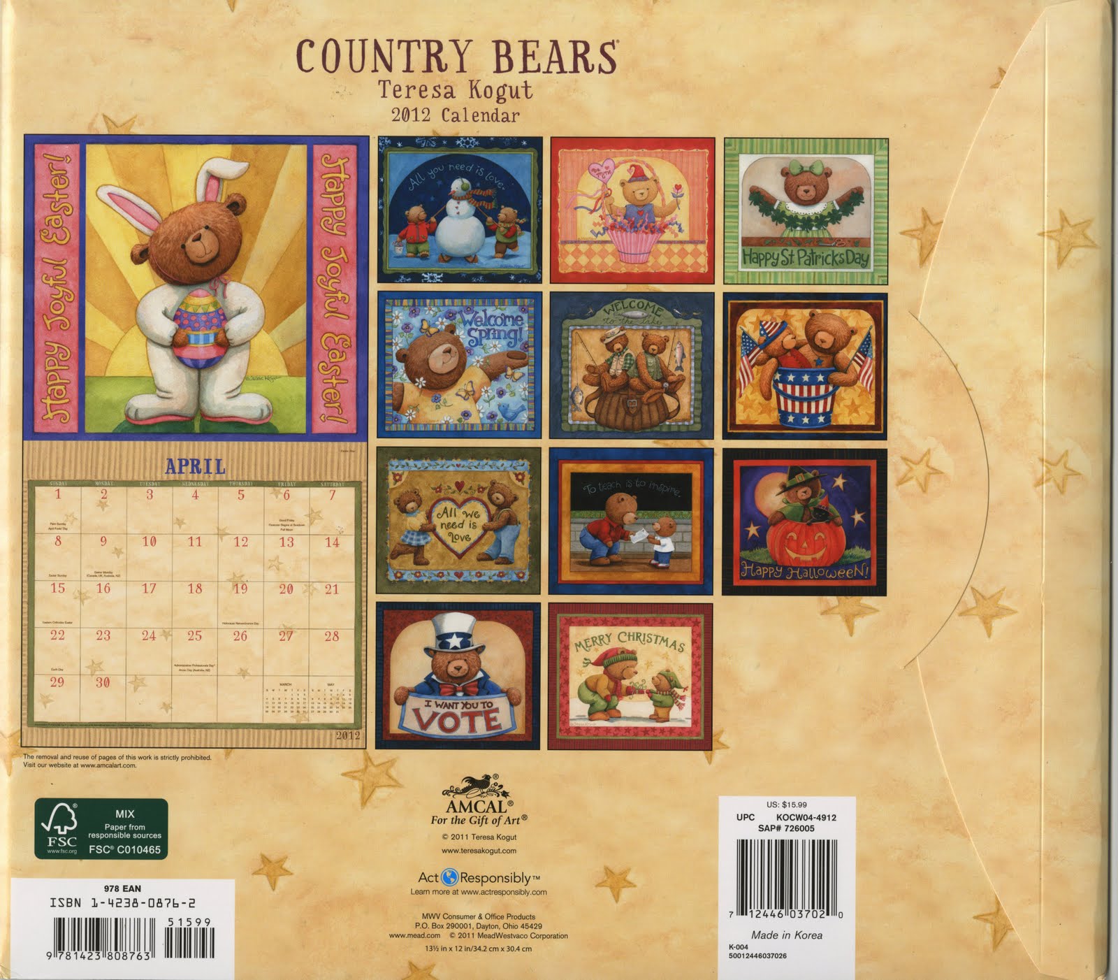YAY!! The 2012 Country Bears calendars are here!! Available at my website. I sign and date every calendar…..if you would like a personalized message please let me know at the time of purchase. You can click on the above images to see a larger picture. I have created the Country Bears calendar since 1999 and I so enjoy painting it every year…..bears never get old!