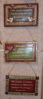 The resin angel figurines are precious. They really captured the sweetness of their faces. Also really love the crosses that hang on the wall.